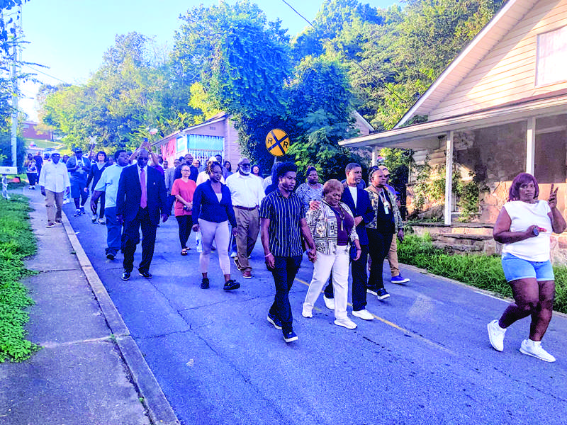A crowd walked down Foley Hill on Friday Oct. 3 in memory of Bobby Cain who made the same walk in 1956. He was one of 12 Black students to attend Clinton High School that year, and the first to graduate, in 1957. (photo:Ben Pounds )