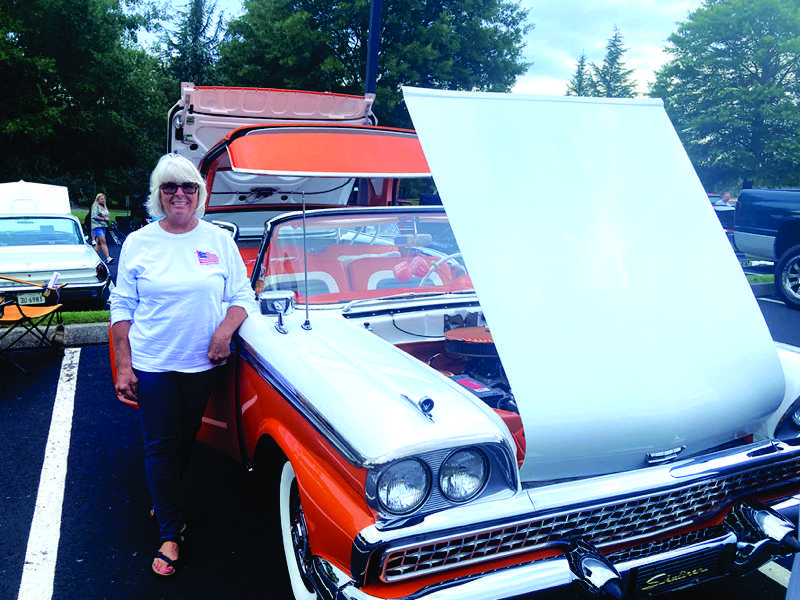 Fonda Voigtmann shows off her 1959 Ford Skyliner, nicknamed “Dreamsicle” at the Atomic Fall Fest’s auto show. - Ben Pounds