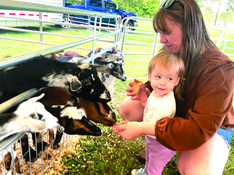 Boylee Frenza and Salyee Frenza feed goats from CW Farms at the Atomic Fall Fest’s petting zoo area. - Ben Pounds