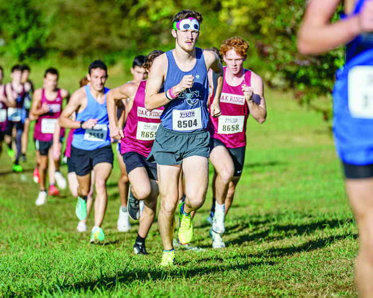 Anderson County junior Cameron Hardy leads a pack of runners during the cross country meet on Saturday. (photo:Tony Cox )