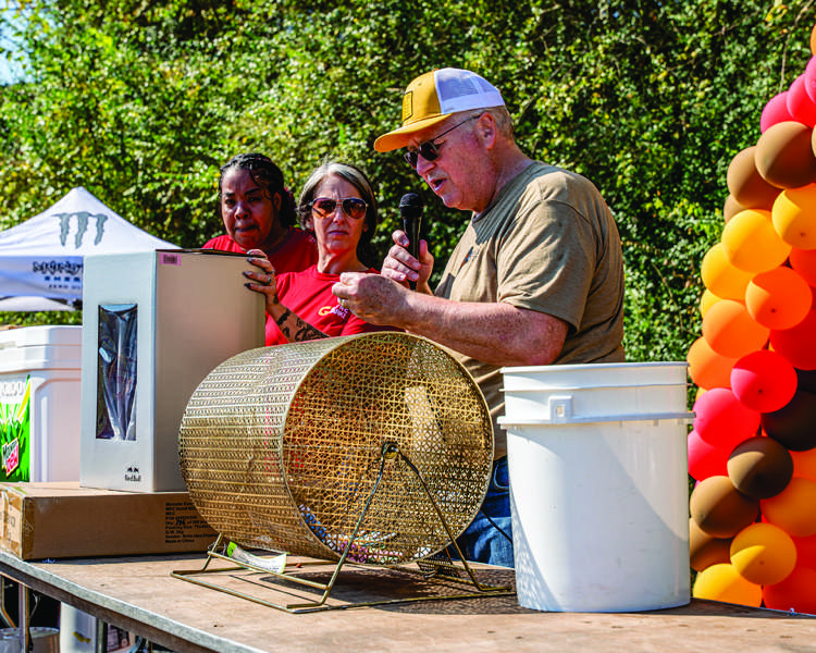 Git’N Go President Bill Robinson calls out winning ticket numbers during Saturday’s Git’N Go birthday celebration at the South Clinton location. - Tony Cox