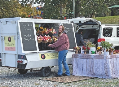 Maggie Garafolo, co-creator of the new Clinton Farmers Market, checks out a flower vendor during last Saturday’s final market event of the year in Jaycee Park. (photo:G. Chambers Williams III )