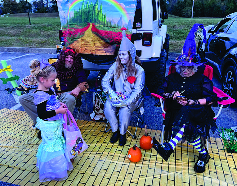 Handing out candy at the SL Tennessee Hallowwen event Saturday afternoon is “Tin Man” Kristi Nance. Others in “Wizard of Oz” costumes are “Cowardly Lion” Doug Barton and “Wicked Witch” Linda Patton.