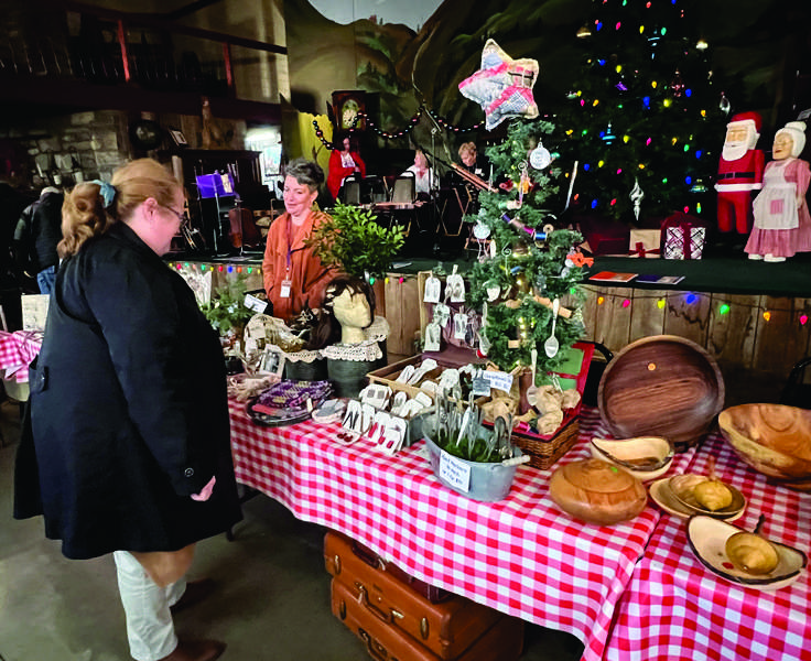 Inside the main museum building and gift shop, visitors can sip sassafras tea, visit with Santa Claus, and browse the Holiday Market, featuring handmade gifts, baked goods, and the works and wares of local artisans.