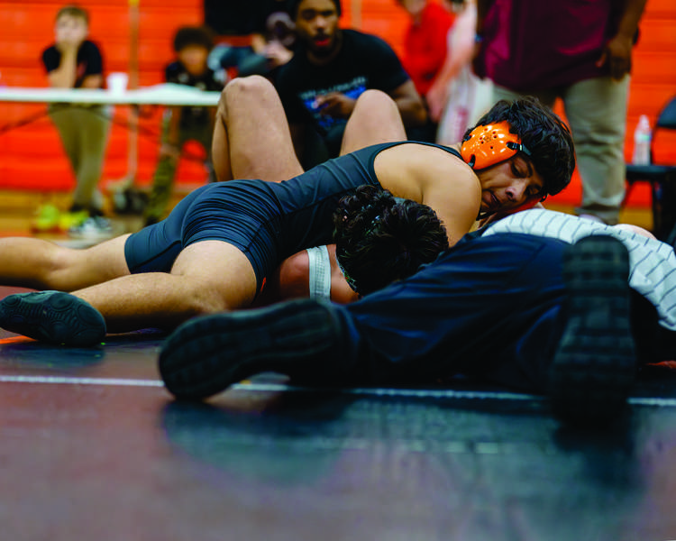 Clinton’s Adam Gonzalez won his match against a Powell wrester by fall and helped the Dragons win a tie-breaker against the Panthers.