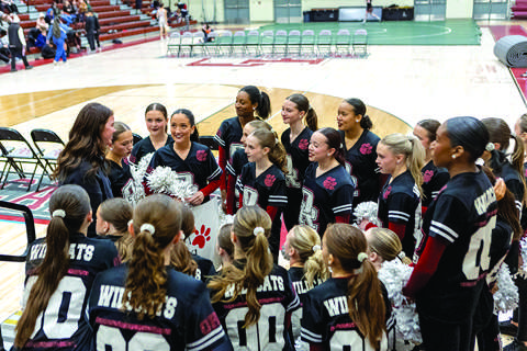 Three time State Champion DanceCats huddle before performing during the Rumble at the Ridge wrestling match Thursday, Jan. 29, at Oak Ridge High School. The dance team helped celebrate the Wildcats’ first home wrestling match of the 2025-26 season and the school’s first wrestling program in nearly seven decades. - Kaylin Dimmer | ORHS Sports Media
