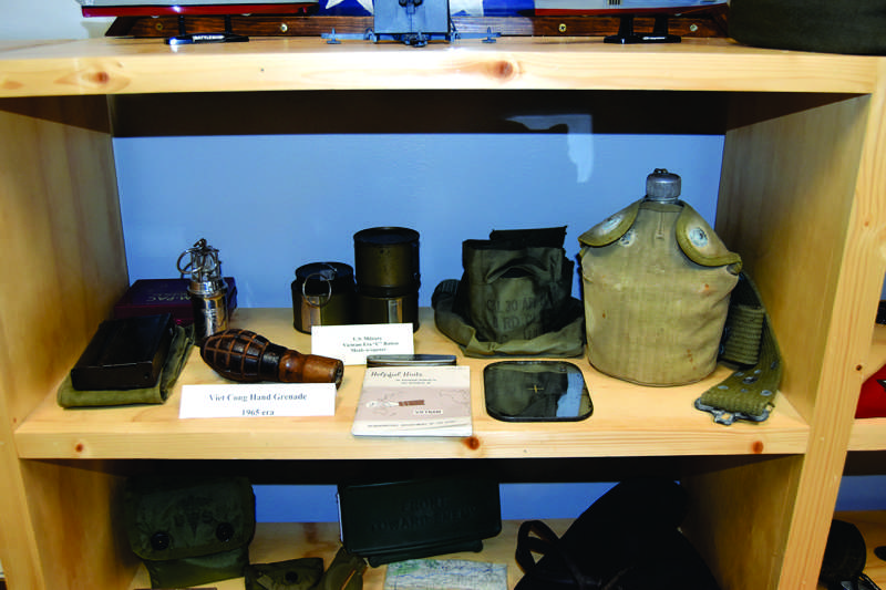 This military gear including a hand grenade and a canteen are part of a small museum in the Anderson County Department of Veterans Services in Room 114 of Anderson County Courthouse in Clinton. The Anderson County Commission recently voted to accept a $10,018 donation for that museum raised by two veterans. (photo:Ben Pounds )