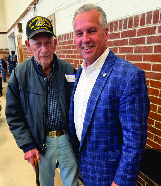 U.S. Marine and Korean War veteran Bruce Farr speaks with state Rep. Rick Scarbrough at March’s Veterans Appreciation Breakfast. (photo:Submitted )