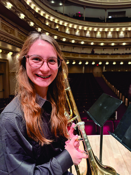 Madeleine Rawdon, a Clinton High School junior trombonist, poses on stage at Carnegie Hall in New York City, where she recently performed as part of the Honors Performance Series. (photo:Submitted )