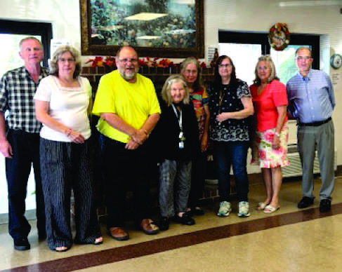 Members of Valley View United Methodist Church led an open communion service for residents of Clinton Towers on Sept. 14. The Rev. William Rimmer conducted the service. Pictured from Valley View UMC, from left, are Ken and Janice Longmire, Debra Keily, and Rimmer. At center are several Clinton Towers residents. Not pictured is Regina Beets. The church thanked residents’ coordinator Teresa Breu for organizing the event.