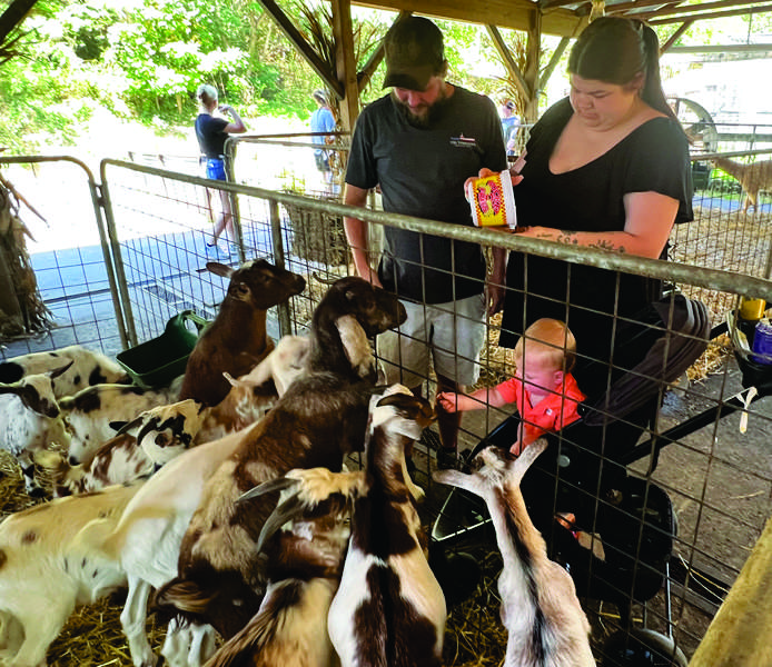 Ethan and Ashley Moneymaker and their son, Wyatt, of Anderson County check out some of the juvenile goats at Little Ponderosa during last Saturday’s fall festival. - G. Chambers Williams III