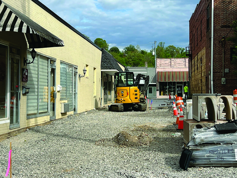 While construction continues this week on the concrete sidewalks along Market Street and the new Pearl Alley walkway between Commerce and Market streets, predictions from city and Historic Downtown Clinton officials are that most of the work will be finished in early June. This week, Main Street is closed to traffic from Church to Kincaid streets as workers continue laying lateral sewer lines from Main Street buildings to the new main sewer line running down the middle of the street. Pearl Alley paving, which began about three weeks ago, is now about one-third finished, but no progress has been seen for about two weeks on the rest of the concrete poring, on the Commerce Street side. The new sidewalks on Market Street are nearly finished, along with some of the planters and other elements. Still to come is the installation of irrigation and light posts, and planting of trees and shrubs all along Market.