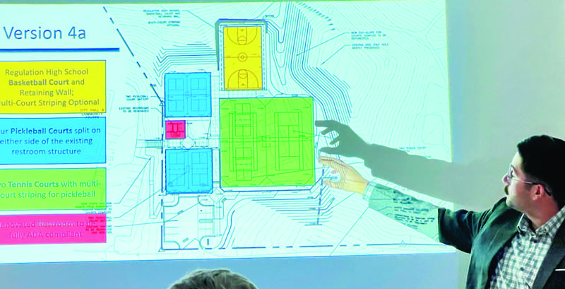 The Norris City Council on Monday night gave preliminary approval to a potentially $1 million-plus plan to upgrade the city park next to the Norris Community Building, adding new restrooms, pickleball courts, and a basketball court – in addition to the existing two tennis courts. On a unanimous vote, the council agreed to send the so-called Norris Sports Complex plan to the engineers to develop a bid package for the work, for which the city already has $750,000 budgeted – including a $375,000 state recreation grant. The plan the council approved was one of two proposals that were presented to council members and residents during a parks workshop last week, conducted by City Manager Bailey Whited. Council members approved the so-called Plan 4, with an estimated top price tag of $1.035 million, which as shown would include four new outdoor pickleball courts, two upgraded tennis courts that could also be used for pickleball, a high-school regulation-size basketball court, and a new restroom building. The second plan presented by Whited, with an estimated $880,00 price tag, would leave out the new restrooms, but pay for some renovations to the current restrooms. It, too, would include four pickleball courts, upgraded tennis courts and a basketball court. Both projects would be financed in part by the $375,000 state recreation grant approved for the city in 2024 that requires a 50-50% local match, plus the $375,000 the city already has in the bank. Additional city funds or perhaps some private donations would be used to make up the deficit.