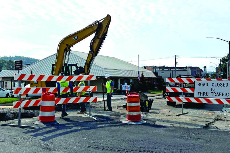 Main Street remained closed to traffic at North Hicks Street Monday morning as construction work continued. (photo:G. Chambers Williams III )