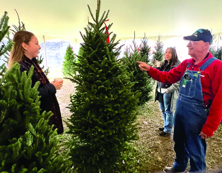Leo Collins, owner of the Bluebird Christmas Tree Farm in Heiskell, chats with a customer during the 2024 Christmas season under the big tent at the farm. (photo:G. Chambers Williams III )