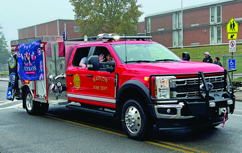 Some members of the Marlow Volunteer Fire Department participate in Saturday’s Veterans Day Parade in Clinton. - G. Chambers Williams III