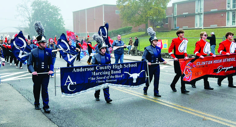 The bands of Clinton and Anderson County High School combined to march together in this year’s parade.