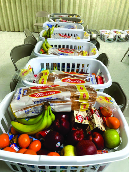 Food baskets with a variety of items sit at the Clinton Community Center the night before their distribution. (photo:Ben Pounds )