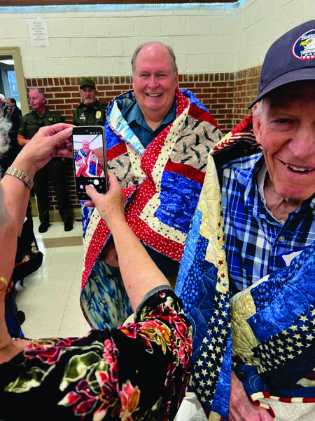 U.S. Army veteran Leon Bradley (foreground) and Air Force veteran Chuck Tanner were each awarded a Quilt of Valor at January’s veterans breakfast, along with Navy veteran Aaron McKenzie (not pictured). (photo:Submitted )