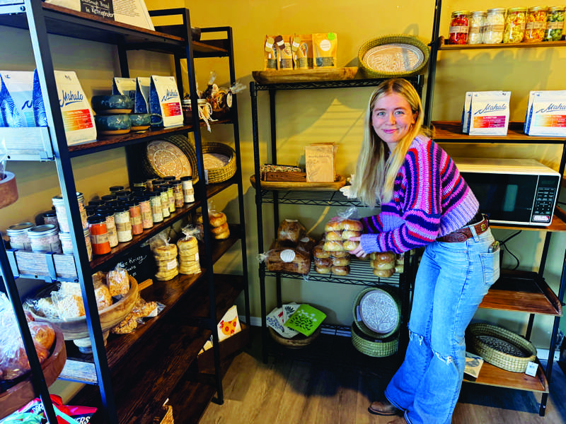 Rachel Barnes stocks shelves at The Corner Spot in Norris with some of her home-baked goodies on Saturday morning as the grand opening celebration begins. (photo:G. Chambers Williams III )