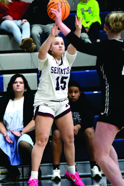 Norris’ Avery Goehring shoots from the 3-point line during the Lady Senators sectional tournament game against Madisonville. (photo:Dwane Wilder )