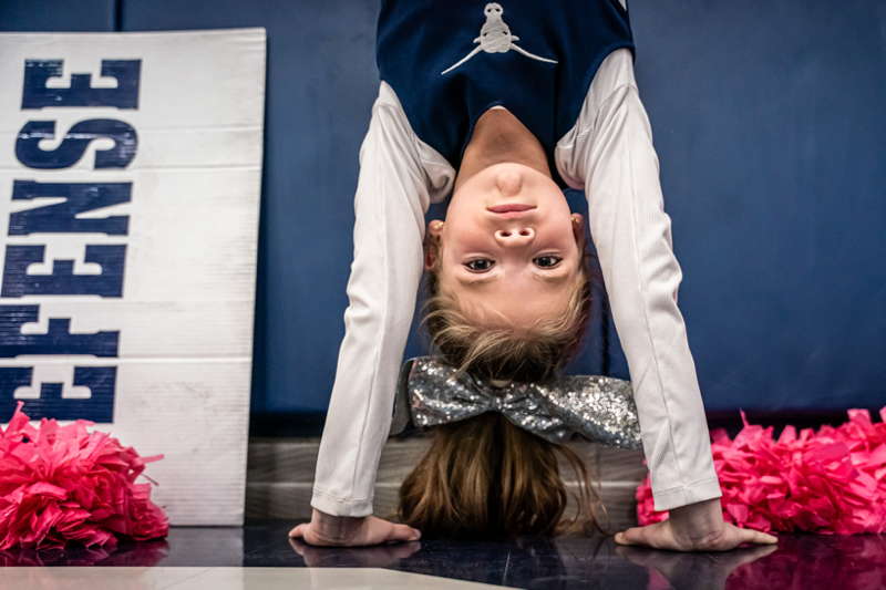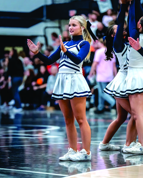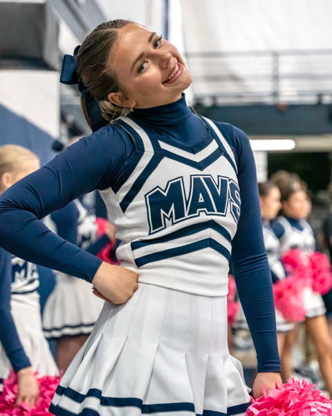 Aree Jeffers, daughter of Anderson County head coach Jordan Jeffers, strikes a pose while cheering Friday night during the Mavericks’ rivalry game against Clinton. A familiar face on the sidelines for several years, Jeffers was head over heels as the Mavericks’ littlest cheerleader joined in the school-spirit fun. - Tony Cox