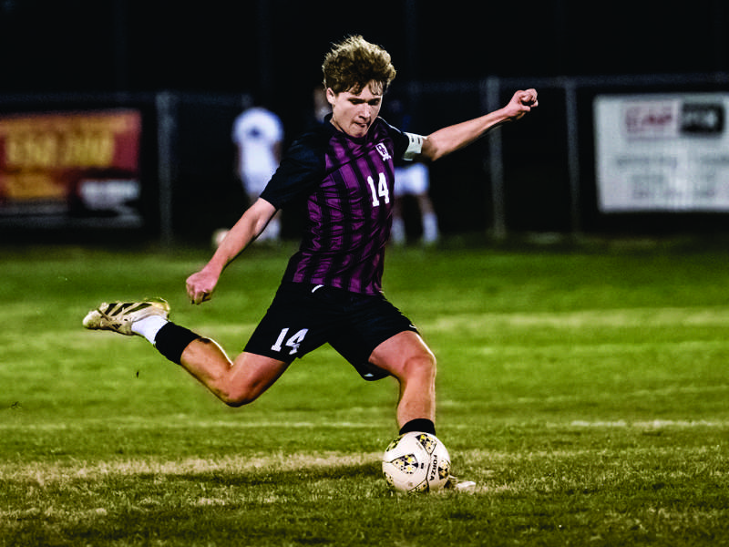 Drayton Keehn boots the ball upfield during Oak Ridge’s matchup against Farragut at Oak Ridge High School. - Allen Etheridge | ORHS Sports Media