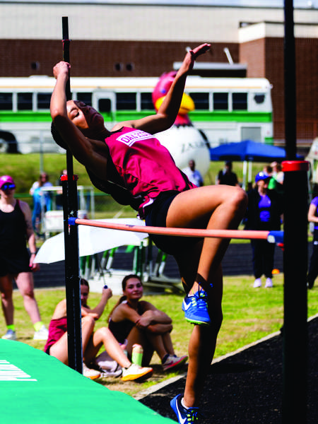 Amajiah Bishop competes in the high jump during a meet in Charleston. - Allen Etheridge | ORHS Sports Media