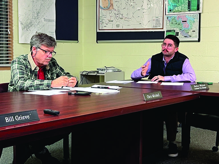 Norris Mayor Chris Mitchell, left, presides over the special called meeting of the City Council on Monday night during which Assistant City Manager Bailey Whited, right, was promoted to city manager effective Jan. 1. - G. Chambers Williams III